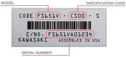 Vous devez saisir ou sélectionner le MODEL et la SPECIFICATION CODE comme indiqué sur l'exemple d'étiquette moteur ci-dessous :
