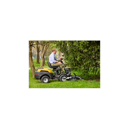 Avec son très puissant moteur bicylindre STIGA ST 550 Twin de 586 cm³, et sa transmission intégrale à boîte-pont Tuff Torq, la tondeuse à coupe frontale Park 500WX peut venir à bout de n'importe quelle pelouse, même en pente. La machine est aisée à diriger et à manœuvrer autour des obstacles également, grâce à son système de direction assistée articulée 50/50 et à la conception innovante de son châssis.