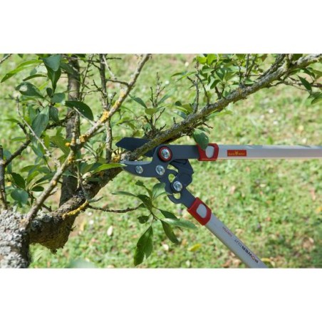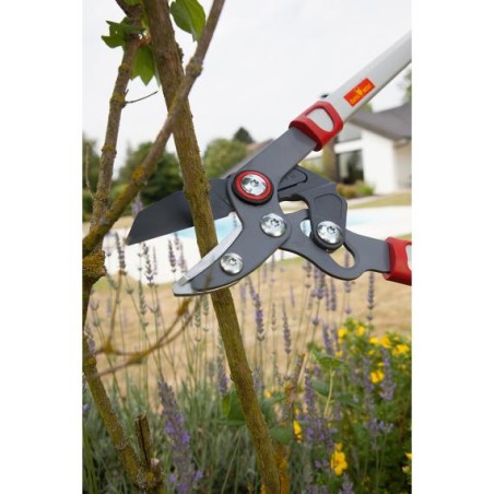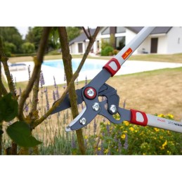 Cet élagueur à coupe enclume nouvelle génération fait parti de la gamme "Premium". L'innovation POWERCUT avec son système ingénieux de démultiplication de puissance permet à tous les jardiniers d’élaguer arbres et arbustes avec une réelle facilité. Grâce à ses manches de 75 cm en aluminium et ses poignées ergonomiques, cet élagueur ultra plat est idéal pour couper au plus près des troncs ou des branches sans les abîmer. Le revêtement en PFTE permet de préserver les lames de l'usure et de la corrosion, pour une efficacité qui dure longtemps. Il dispose d'un système de réglage du serrage des lames pour une coupe toujours efficace. Cet outil convient parfaitement à la taille tous les bois morts ou à la coupe de matériaux tendre (caoutchouc, plastique...).