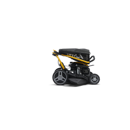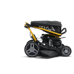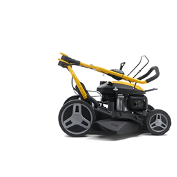 Les grandes roues arrière garantissent, quant à elles, la manœuvrabilité de la tondeuse sur les terrains irréguliers.